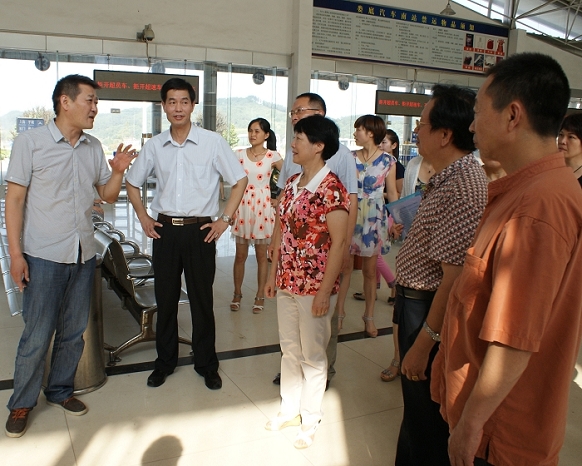 鄧煥章主席一行實(shí)地察看了婁底汽車南站候車大廳“三品”檢查崗、優(yōu)質(zhì)服務(wù)崗、驗(yàn)票崗等多個崗位的工作現(xiàn)場,了解員工工作情況。