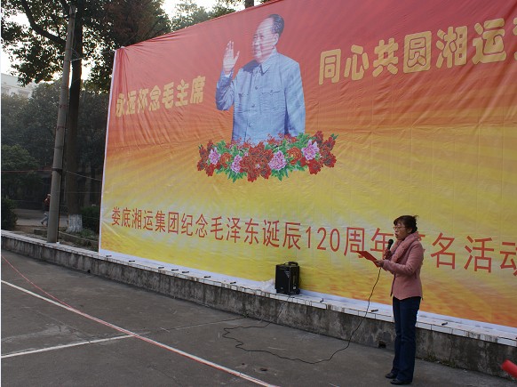 今年是毛澤東主席誕辰120周年,是公司深入學(xué)習(xí)貫徹黨的十八屆三中全會(huì)精神,踏上新征程的開(kāi)局之年。12月24日上午9時(shí)許,公司在老機(jī)關(guān)院落籃球坪隆重舉行“永遠(yuǎn)懷念毛主席、同心共圓湘運(yùn)夢(mèng)”紀(jì)念毛澤東誕辰120周年離退休老同志大型簽名紀(jì)念活動(dòng),緬懷先烈們的豐功偉績(jī)。公司婁底片離退休、 內(nèi)退、協(xié)保同志近四百人參加了此次活動(dòng)。公司董事長(zhǎng)兼總經(jīng)理彭瑞華、監(jiān)事會(huì)主席吳一江等公司領(lǐng)導(dǎo)親臨活動(dòng)現(xiàn)場(chǎng)。