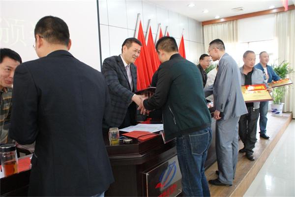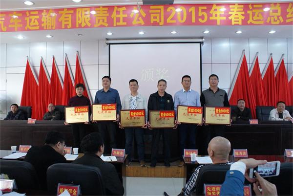 董事長兼總經(jīng)理彭瑞華等公司領(lǐng)導(dǎo)為2015年春運(yùn)先進(jìn)班組頒獎(jiǎng)