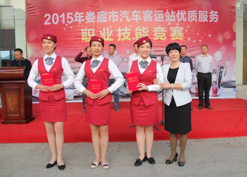 10月22日,由婁底市總工會(huì)和婁底湘運(yùn)集團(tuán)聯(lián)合舉辦的2015年婁底市汽車客運(yùn)站優(yōu)質(zhì)服務(wù)職業(yè)技能競賽在婁底汽車南站圓滿落下帷幕。在為期兩天的比賽中,來自全市各縣市區(qū)的六支代表隊(duì),30名選手進(jìn)行了激烈角逐,婁底汽車南站代表隊(duì)以雄厚實(shí)力斬獲團(tuán)體一等獎(jiǎng),同時(shí)被授予“婁底市五一先鋒集體”榮譽(yù)稱號,婁底客運(yùn)分公司代表隊(duì)、新化分公司代表隊(duì)獲得團(tuán)體二等獎(jiǎng)。婁底汽車南站王菲成功摘得個(gè)人桂冠,并被授予“婁底市五一標(biāo)兵”榮譽(yù)稱號。婁底客運(yùn)分公司邱媚等獲得個(gè)人二等獎(jiǎng)。新化分公司周海燕等獲得個(gè)人三等獎(jiǎng)。婁底市人大常委會(huì)黨組副書記、副主任、市總工會(huì)主席肖有勝,市總工會(huì)黨組書記、常務(wù)副主席鄧煥章,公司董事長兼總經(jīng)理彭瑞華等領(lǐng)導(dǎo)出席了開、閉幕式典禮。