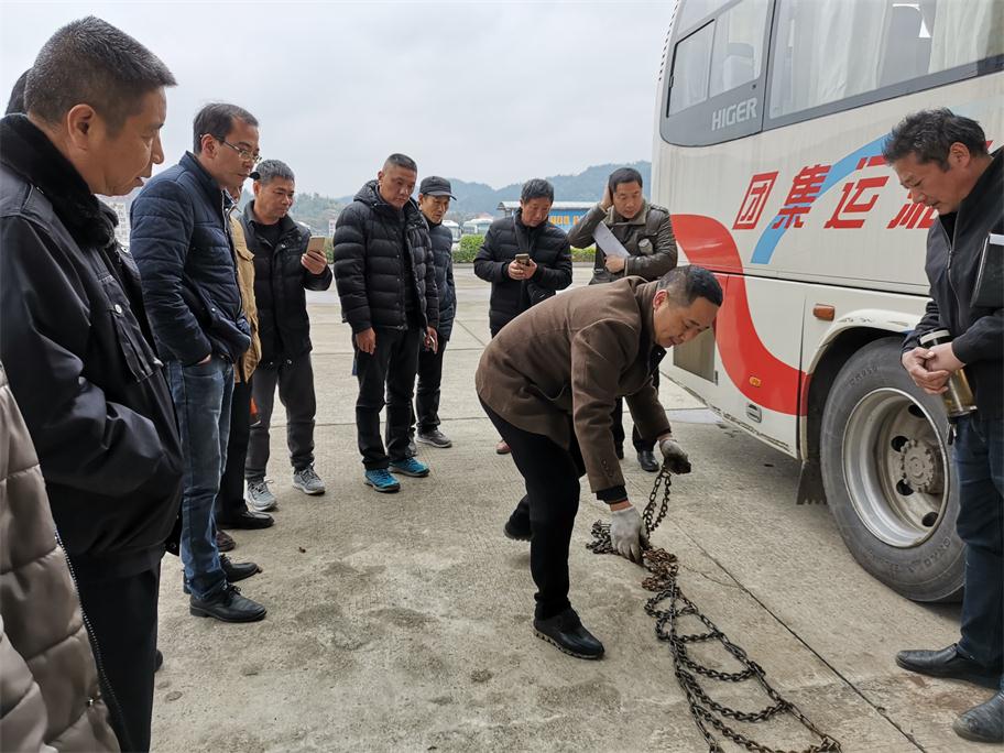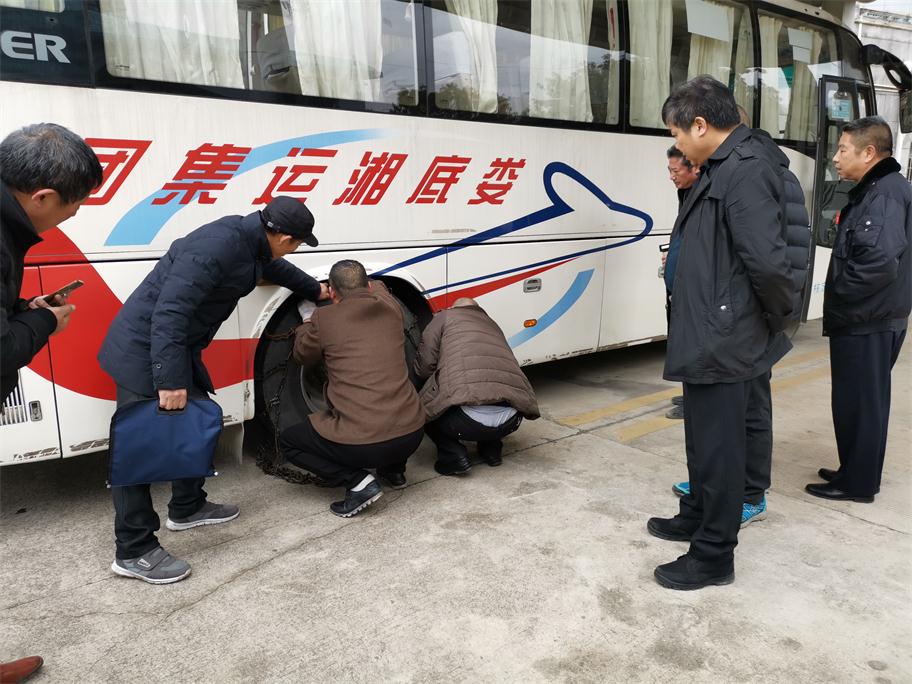 根據(jù)氣象預(yù)報發(fā)布,我市將持續(xù)低溫雨雪冰凍惡劣天氣,給老百姓工作、生活以及交通出行帶來極大影響。為將惡劣雨雪冰凍影響降到最低,確保旅客平安出行,婁底湘運集團嚴陣以待,積極應(yīng)對,落實責(zé)任,提前啟動冰雪惡劣天氣應(yīng)急方案,扎實做好各項防范措施以及安全生產(chǎn)工作。一、公司召開安全例會,提前就冬季安全工作進行全面布置,重點部署了即將到來的低溫雨雪冰凍惡劣天氣安全工作。二、組織各單位安全副經(jīng)理、安技辦主任等現(xiàn)場觀摩防滑鏈安裝演練,要求安全管理工作中高標準督促駕駛員落實。三、通過安全QQ、微信群、電話等及時轉(zhuǎn)發(fā)天氣預(yù)報,針對性采取防范措施。四、充分利用動態(tài)監(jiān)控,第一時間掌握車輛的運行狀態(tài),對在外運行的班車逐臺查詢,對全司所有車輛每隔2小時發(fā)布惡劣天氣預(yù)警,五、要求各單位做好防冰防寒防滑以及安全警示警告及班次停運通知公示工作,六是增派問訊人員,及時給廣大旅客做好停運解釋工作,要求所有售票窗口不收取任何退票手續(xù)費,免費提供熱開水,開放空調(diào)候車室等保暖工作。七是加強對各單位冬季安全工作督查力度。29日晚婁底迎來降雪,安全副總羅雄雁率安技部人員冒雪前往婁底車站南站檢查,并來到監(jiān)控中心,通過監(jiān)控平臺對全司車輛狀態(tài)以及按要求停運車輛情況進行重點檢查,對各單位防滑防冰保暖警識牌設(shè)立、值班值守情況進行了現(xiàn)場落實與督辦。