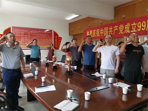 雙峰分公司黨支部組織全體黨員召開慶祝建黨99周年座談會(huì),黨支部書記吳國(guó)柱主持座談會(huì),首先全體黨員在黨旗下重溫入黨誓詞。接著吳書記組織全體黨員學(xué)習(xí)了習(xí)近平總書記“關(guān)于黨的建設(shè)講話”片段。參會(huì)黨員就如何結(jié)合企業(yè)實(shí)際,樹立黨員的先鋒模范作用,發(fā)揚(yáng)黨組織的戰(zhàn)斗堡壘作用來促進(jìn)企業(yè)和諧穩(wěn)步、健康發(fā)展紛紛獻(xiàn)計(jì)獻(xiàn)策。最后黨員們進(jìn)行了思想交流,共商企業(yè)發(fā)展大計(jì)。