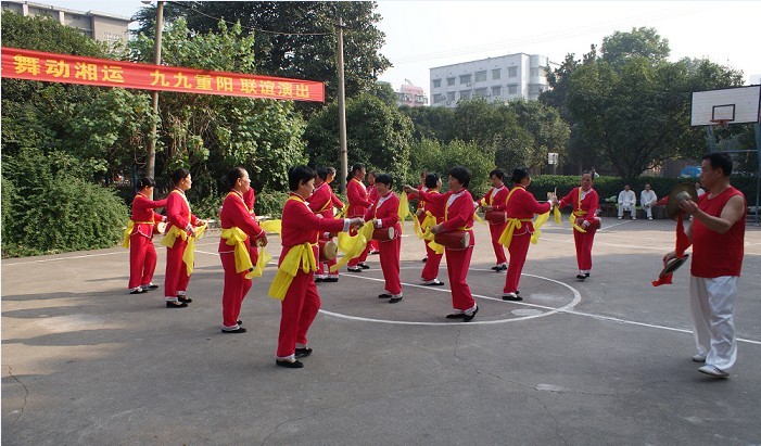 九時許,在歡快喜慶的腰鼓聲中 “天天太極 舞動湘運(yùn) 九九重陽”聯(lián)誼演出拉開了序幕。