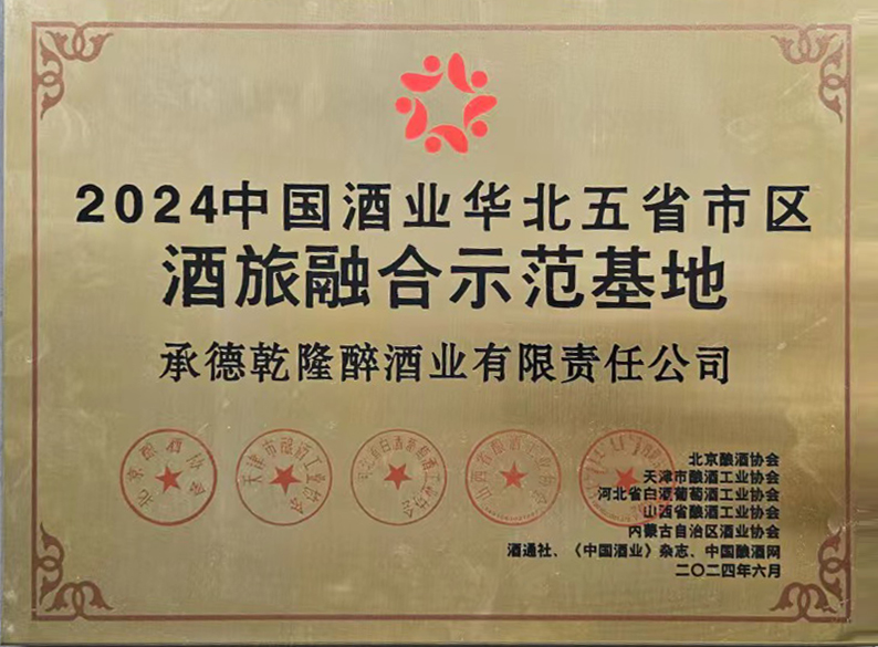 承德乾隆醉酒業(yè)(板城酒業(yè))在本次活動(dòng)中榮獲“2024中國酒業(yè)華北五省市區(qū)·酒旅融合示范基地”的榮譽(yù)稱號。此項(xiàng)榮譽(yù)的獲得,是白酒行業(yè)與媒體對板城酒業(yè)酒旅融合新業(yè)態(tài)發(fā)展的肯定與鼓勵(lì)。