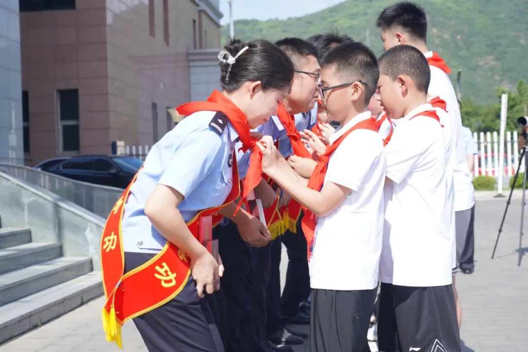 在開營儀式上,河北省公安廳黨委委員、政治部主任齊建政向承德市公安機(jī)關(guān)立功受獎(jiǎng)民警代表頒獎(jiǎng)。夏令營的公安英烈子女代表為獲獎(jiǎng)民警敬戴紅領(lǐng)巾。這一刻,孩子們仰慕的眼神讓獲獎(jiǎng)民警心情難以平靜,他們把孩子們摟在懷里,真情祝福他們健康成長。公安英烈子女代表黃昶瑋代表夏令營的孩子們發(fā)言,他說,我們會(huì)牢記各位英模、公安前輩的囑托,繼承和發(fā)揚(yáng)父輩的忠誠本色和優(yōu)良作風(fēng),樹立戰(zhàn)勝困難的信心和勇氣,沿著父輩的足跡堅(jiān)定前行,早日成為建設(shè)國家、服務(wù)人民的棟梁之才。