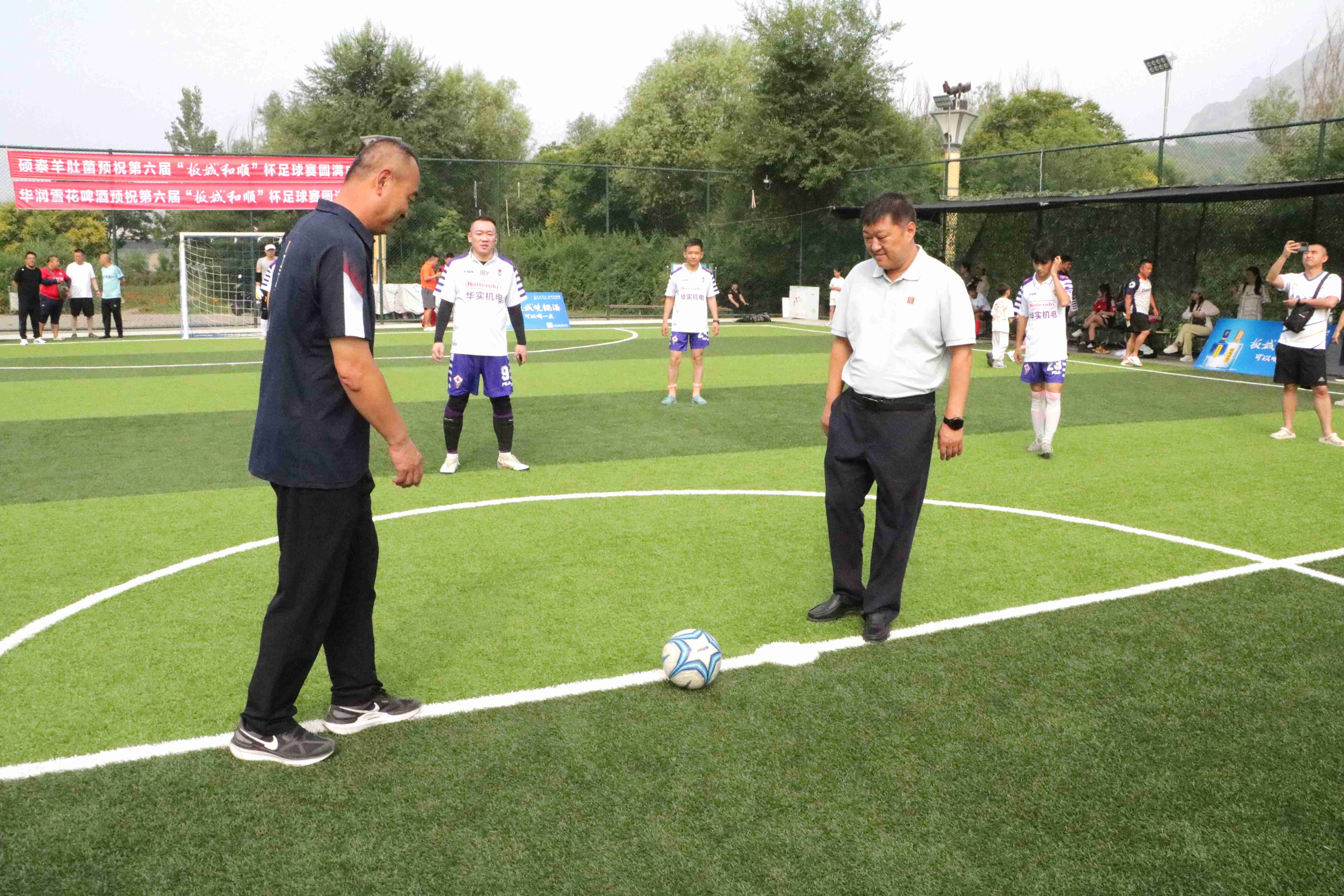 承德縣教育和體育局班子成員、體育工作指導(dǎo)中心主任朱瑞東和板城酒業(yè)承德南部戰(zhàn)區(qū)區(qū)域經(jīng)理胡聚偉為比賽開球。